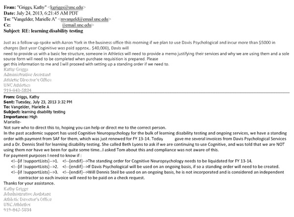 The "paper class" mechanism may have been restricted to the AFAM department of the College of Arts and Sciences, but public release of internal communications show pervasive catering to athletic interest, "helping" student-athletes with excessive independent studies, favored registration, upper class course enrollment for "at-risk" 1st year student-athletes, grading and/or assignments coordinated with counselors, frequent core course substitutions, plagiarism and other honors violations tolerated, and overly "cozy" relationships with counselors.